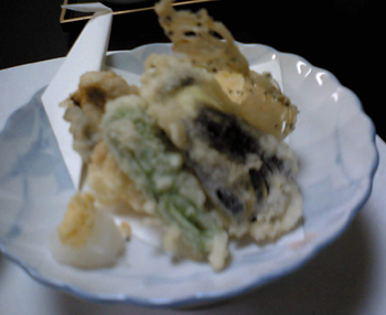牡蠣とたたみいわしの天ぷら、サツマイモとナスつき。