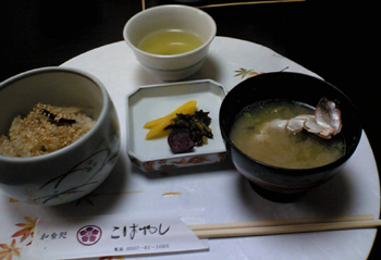 これに、炊き込みご飯とお吸い物。